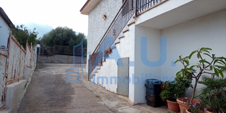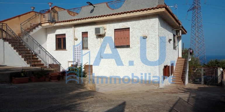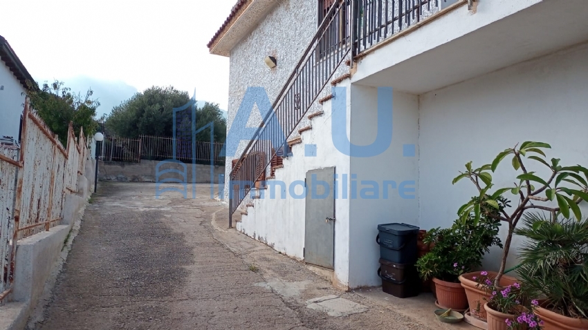 AM043 - Altavilla Milicia (PA) - C.da Piano San Michele - Aci - In zona residenziale – Porzione di Bifamiliare con 2 Appartamenti in Villa (Lato Messina) di Mq. 130 al Piano Terra, Mq.110 oltre porticato al P1 e mq.800 circa di terreno compreso il fabbricato, con giardino ed ampio parcheggio con cisterna interrata in C.A. e doccia esterna. Internamente è composta da: Piano Terra: Ampio Salone con angolo cucina, Camera da letto Matrimoniale, Camera, cameretta e 2 W.C. di cui uno con vasca oltre terrazzino esterno; Piano Primo: accesso da vano scala esterno su ampia veranda di mq.40 circa panoramica, ingresso su salone – soggiorno con stufa a pellets, cucina media con sfogo su veranda, disimpegno, camera da letto matrimoniale, cameretta comoda e w.c. doccia con annessa lavanderia; Piano Secondo con accesso da scala esterna su ampio terrazzo panoramico, immobile fornito di infissi in legno. In Zona residenziale abitata tutto l'anno, a circa 3 km dal mare.